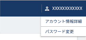 ヘッダー部のマイアカウントメニューから、各情報の閲覧、パスワード変更ができます。