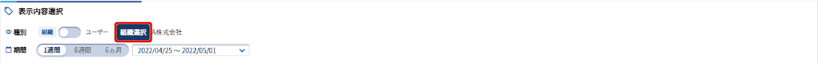 組織を選択する 運転状況概要の結果を表示する組織を選択することができます。 運転状況概要画面の組織画面(組織画面に切り替える)で表示内容選択の【組織選択】をクリックします。 組織一覧画面から組織を選択します。 No. 項目 内容 +/- ボタン +ボタンをクリックすると、下の階層が表示されます。-ボタンをクリックすると、表示している階層を閉じます。