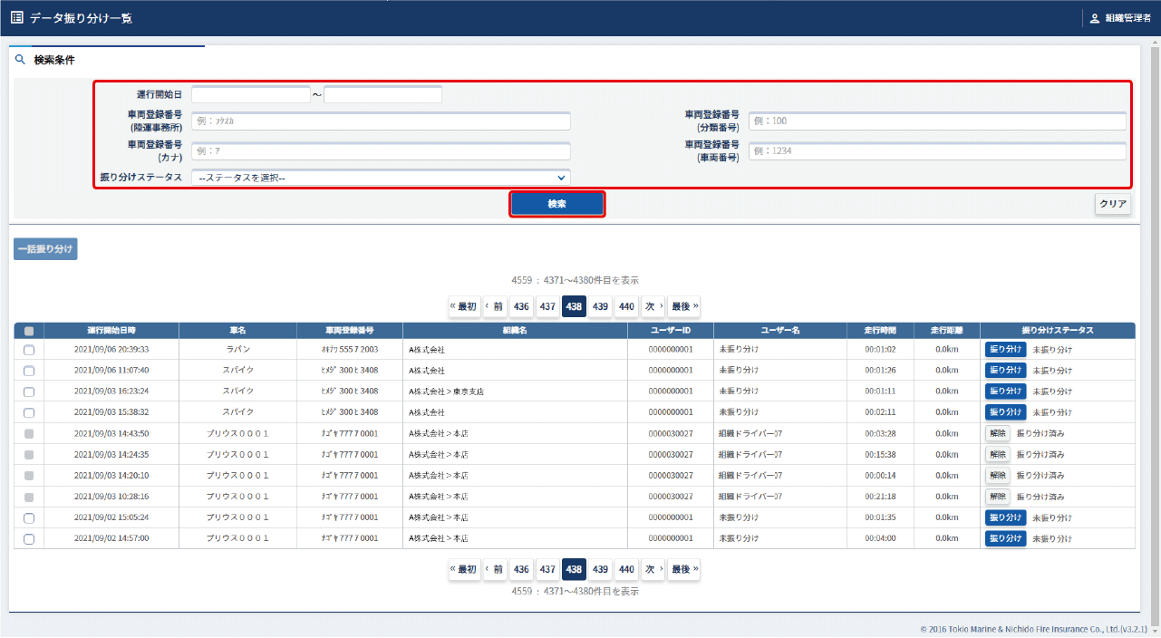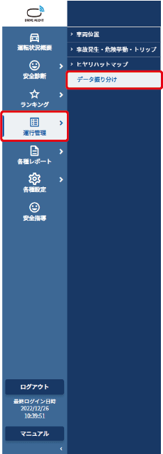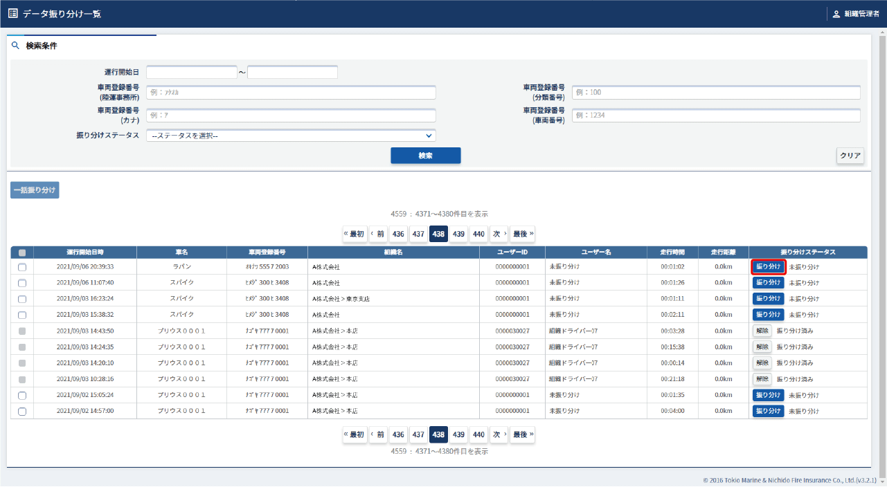- データの振り分け先は、組織管理者の所属組織および下位組織に所属しているドライバーのみです。