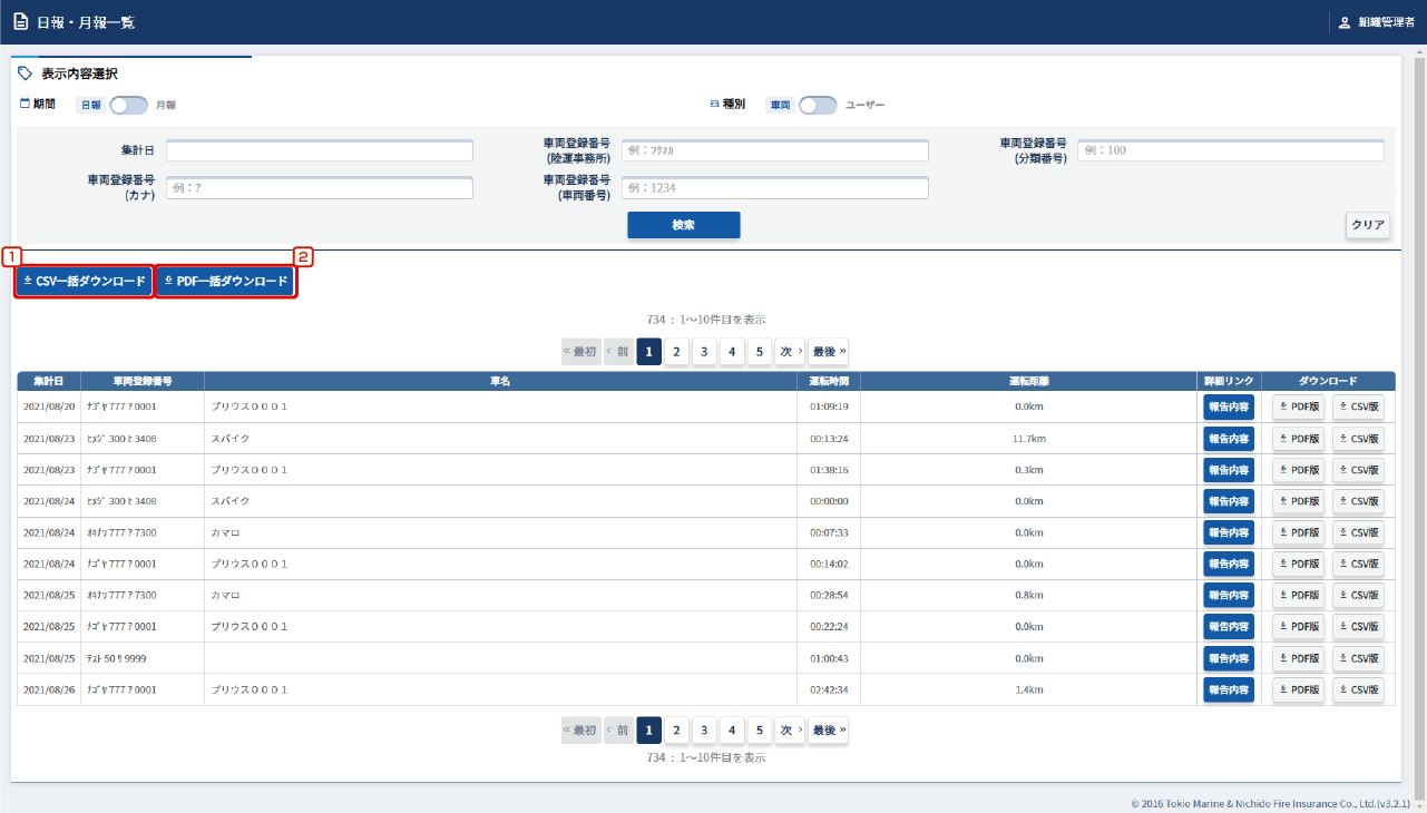 すべての車両の日報・月報を確認することができます。