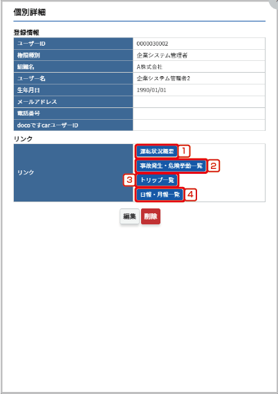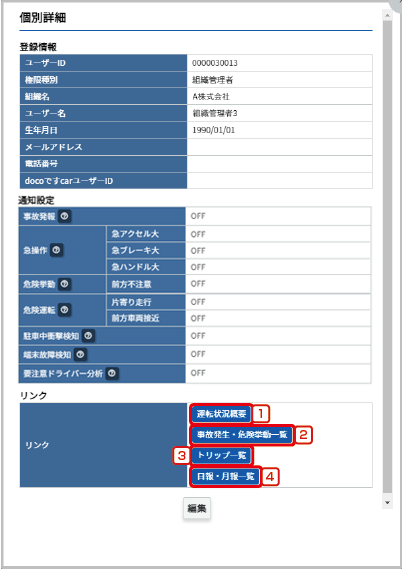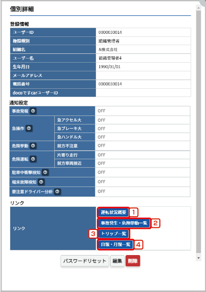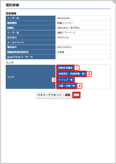 運転状況概要 選択したユーザーの運転状況概要画面を表示します。(運転状況概要画面を表示する)