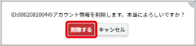 ユーザー情報を削除する Note: ご自身のユーザー情報は削除できません。 個別詳細画面(個別詳細画面を表示する)で【削除】をクリックします。 【削除する】をクリックします。 Note: ユーザー情報を削除した場合、削除したアカウントに振り分けられていた走行データは、翌日に振り分けが解除され、以降「未振り分け」のデータとして表示します。