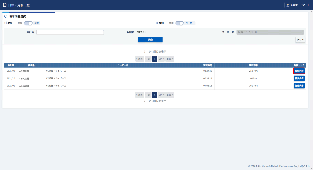 危険挙動回数 【詳細】をクリックすると危険挙動詳細を表示