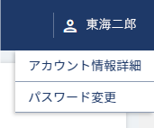 マイアカウントメニュー ヘッダー部のマイアカウントメニューから、家族ドライバーご自身の情報の閲覧、パスワード変更ができます。 ヘッダー部のアカウント名をクリックします。 マイアカウントメニューが表示されます。